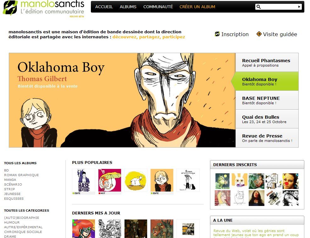 Les amateurs de musique ont MyMajorCompany, ceux de cinéma, Touscoprod. C’est au tour des fans de BD d’avoir leur site communautaire pour dénicher les jeunes talents : celui de Manolosanctis, une maison d’édition qui a ouvert ses portes au début du mois. Elle s’appuie sur les avis des internautes pour sélectionner les auteurs qui vont être publiés. Mais elle ne leur demande pas de contribution financière.