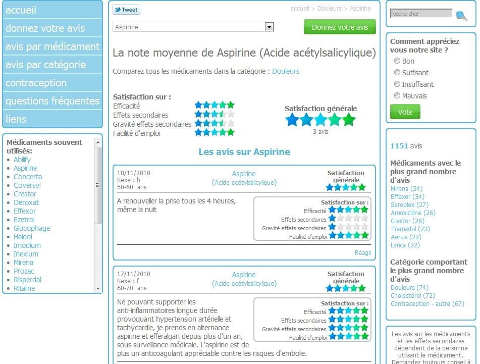 Quant à l’internaute qui est à la recherche d’une information, il peut accéder à la base d’avis soit à partir d’un nom de médicament précis, soit selon la pathologie qu’il traite.