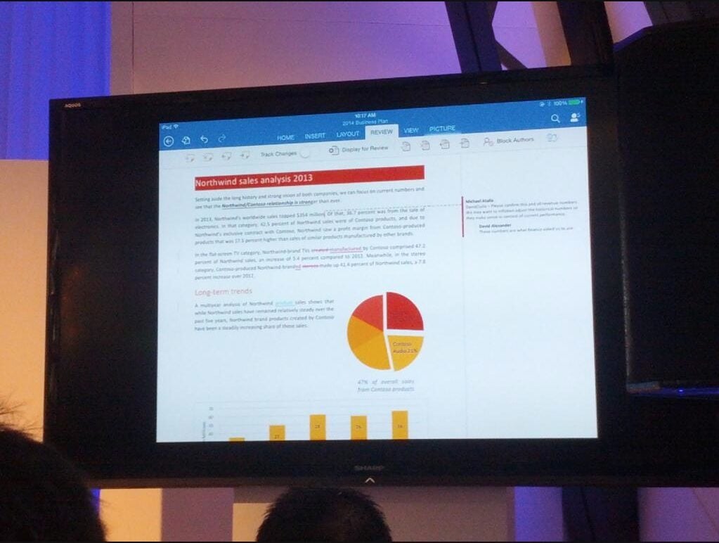 Microsoft Office est disponible sur iPad ! Voilà ce que vient d’annoncer le PDG de Microsoft, Satya Nadella, durant une conférence qui a eu lieu aujourd’hui à San Francisco. La suite bureautique sera gratuite pour consulter des documents, mais il faudra en revanche un abonnement à Office 365 pour les éditer. Word, Excel et Powerpoint seront de la partie. Microsoft assure par ailleurs que cette version sera à 100 % compatible avec les fichiers conçus pour la version traditionnelle des trois logiciels.