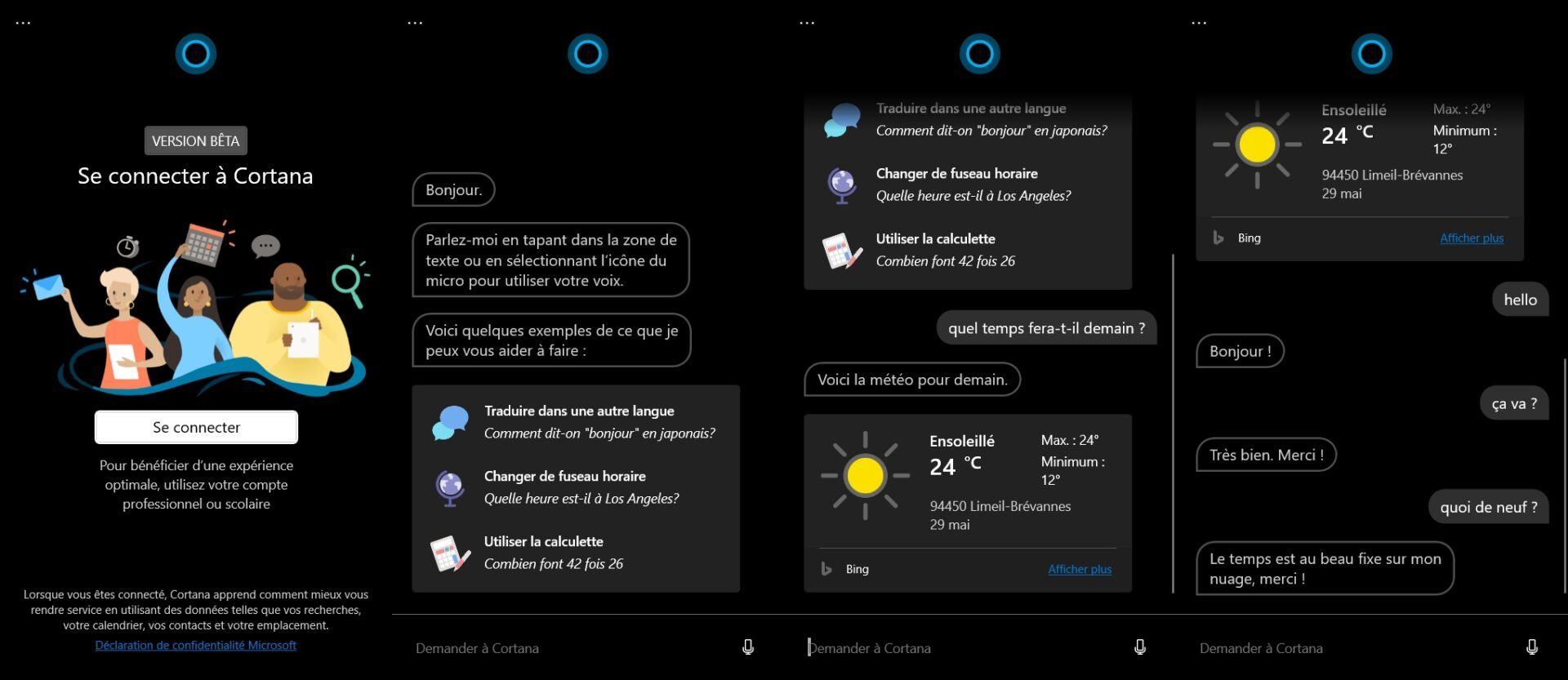 Au programme, Cortana profite d’une interface similaire à une fenêtre de discussion, et peut désormais comprendre en langage naturel les requêtes dictées ou écrites.