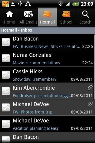 Hotmail pour Android ne fait pas dans la fioriture, et c’est tant mieux. Dans une interface sobre et agréable, il propose l’essentiel des fonctions d’une messagerie, y compris les dossiers et les pièces jointes. Il est possible de gérer plusieurs comptes Hotmail à la fois et d’en suspendre l’activité à volonté.