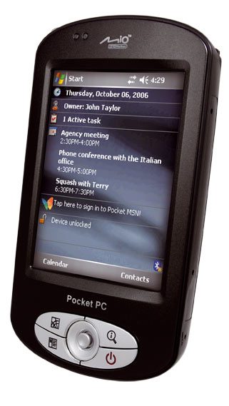Mio, sont caractérisés par leur format (11,5 x 7,2 x 1,8 cm pour 170 g) et leur grand écran LCD couleur tactile (8,9 cm ou 3,5 pouces de diagonale).Ils se distinguent également par leur système d’exploitation spécifique, qui est très souvent signé Microsoft. Il s’agit en l’occurrence de Windows Mobile 5.0. Ce dernier regroupe des versions light des applications