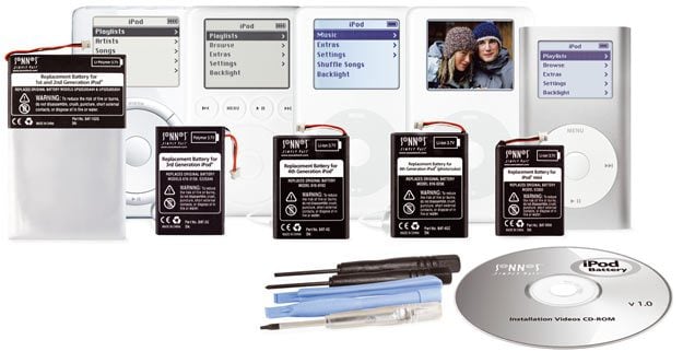 également compatible avec la batterie Sonnet Technologies.Le prix de ces kits est de 45 € TTC pour les iPod de 1re et 2e génération et de 35 € TTC pour les autres modèles. Ils sont disponibles sur le site du revendeur