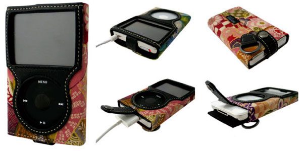 s’habillent de motifs particulièrement colorés. Un changement radical pour les baladeurs d’Apple qui manquaient de ‘ vêtements fantaisie ‘.Autour de l’écran ainsi que des touches du baladeur, le tissu laisse place à un revêtement de cuir noir. Plus robuste, il supporte mieux les contacts répétés des doigts et protège plus efficacement le baladeur d’éventuels chocs sur ces