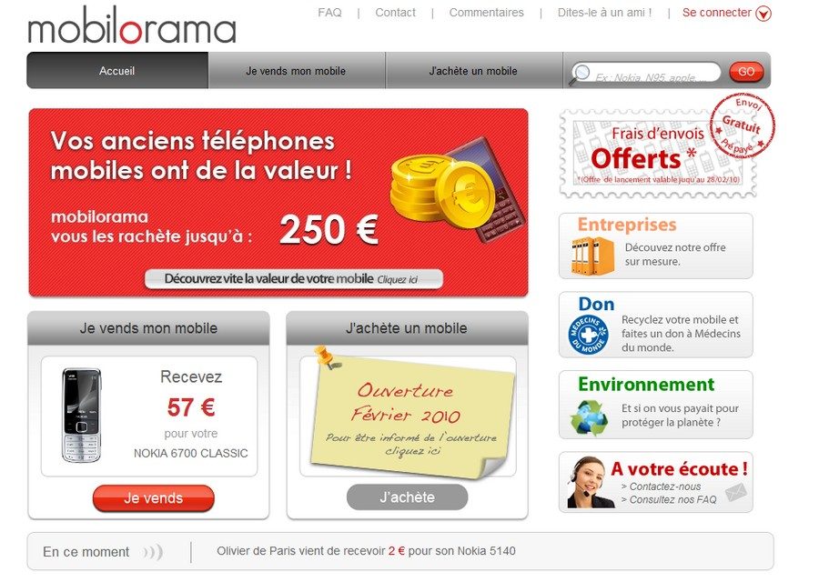 Contrairement à certains opérateurs qui reprennent les portables contre des bons d’achat ou un nouvel abonnement, le rachat se fait ici en espèces sonnantes et trébuchantes. Mobilorama n’est pas le premier à lancer ce concept : des sites comme Fonebank l’ont précédé sur ce domaine.