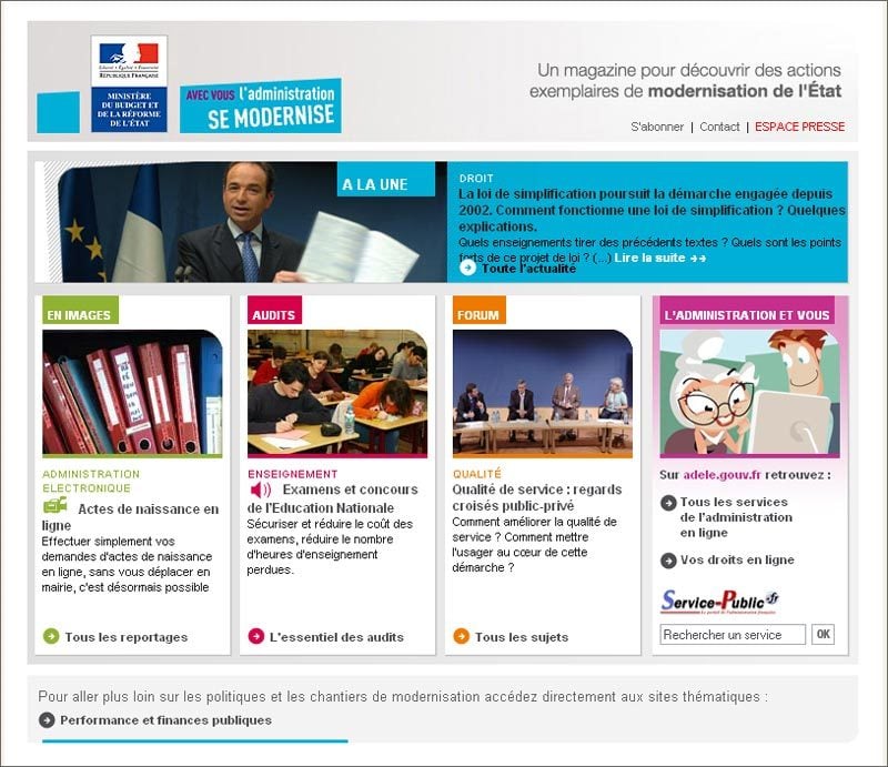 L’Administration française propose de plus en plus de services sur le Net. Cette modernisation est présentée dans ce magazine en ligne, édité par le ministère de l’Economie. Les sujets peuvent plus ou moins intéresser le grand public,