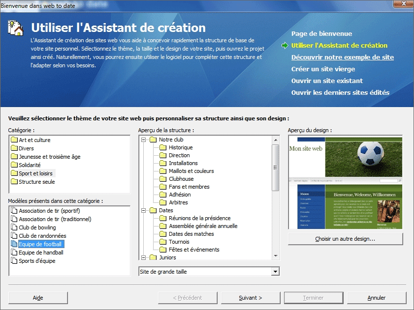 modèles sont nombreux et pertinents. Par exemple, pour un club de football, on trouve une description du club mais aussi une page avec les dates importantes (assemblée générale, matchs, etc. ), une autre réservée aux résultats, etc.Il est possible de changer les thèmes ou d’en ajouter des nouveaux. Chaque élément est bien sûr personnalisable, mais le principal atout du logiciel vient des modules interactifs. Par exemple, si le club organise une sortie, vous
