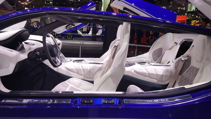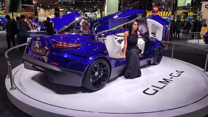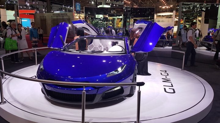 Voilà le fruit du travail d’une société japonaise créée au sein de l’université de Kyoto et qui a donné naissance à la marque GLM. Ce concept car électrique, baptisé G4, se positionne sur le segment des supercar.. D’ailleurs sur le stand, la comparaison est faite avec Lamborghini… rien que ça.