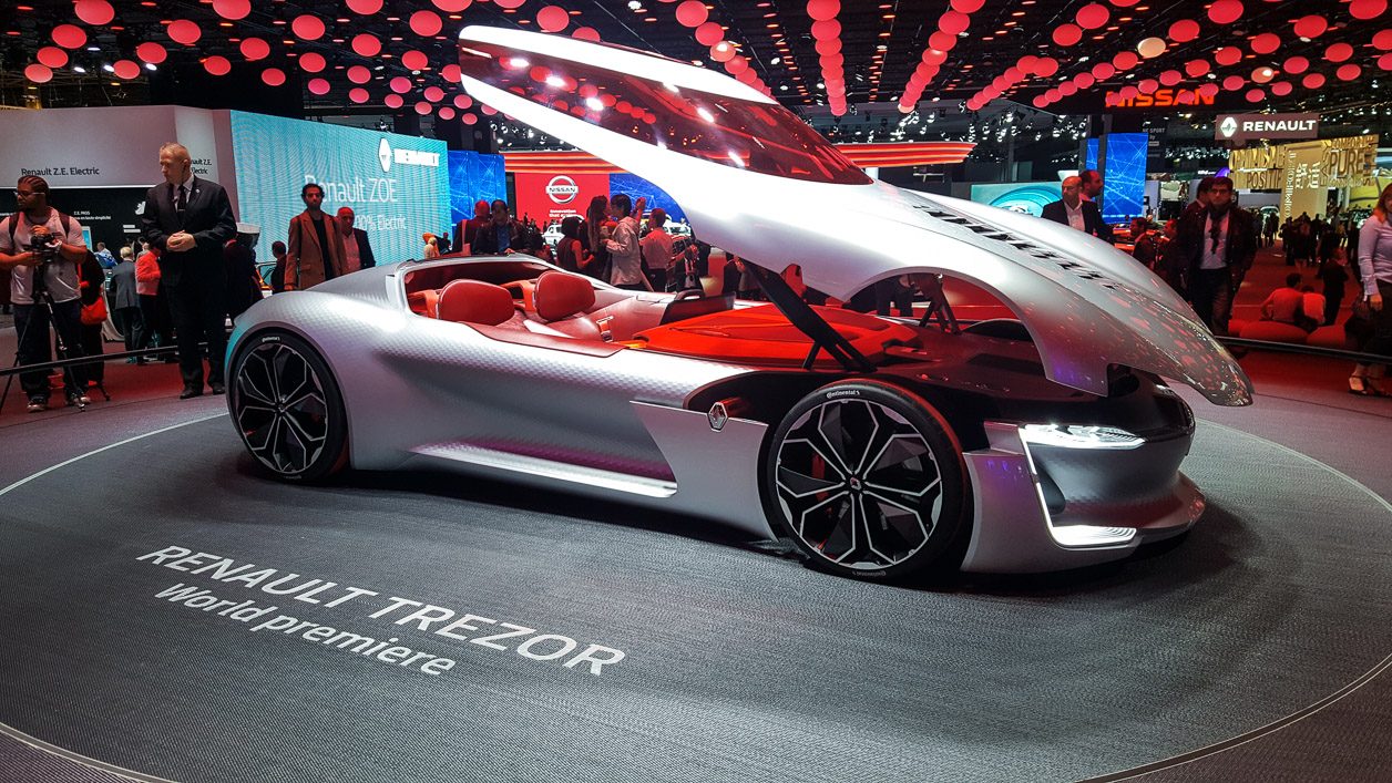 Elle est installée sur la plateforme la plus haute du stand Renault au Mondial de Paris, comme pour régner sur ses frères et sœurs que sont les Zoe, Talisman et autre Scenic. La TreZor – avec Z pour Zero Emission – est le concept-car électrique que la marque au losange expose dans le hall 1 et qui attire beaucoup de curieux.