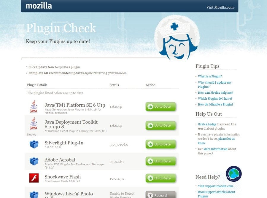 En octobre dernier, Mozilla mettait en ligne un outil pour permettre aux utilisateurs de son navigateur Firefox de vérifier instantanément l’état de mise à jour d’une quinzaine de plug-in disponibles pour le navigateur : Silverlight, Java, Flash, etc.