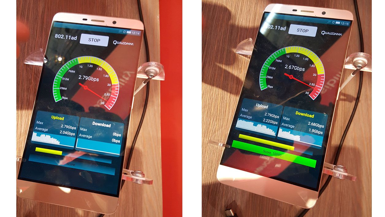 Et les résultats du benchmark le prouvent. De 2 Gbits/s chez Intel, l’aiguille flirte désormais avec les 3 Gbits/s … 2,79 Gbits/s ! Avec un sourire en coin, le porte-parole de Qualcomm nous dit alors : « Bon, on a un super débit, mais alors quels sont les usages ».