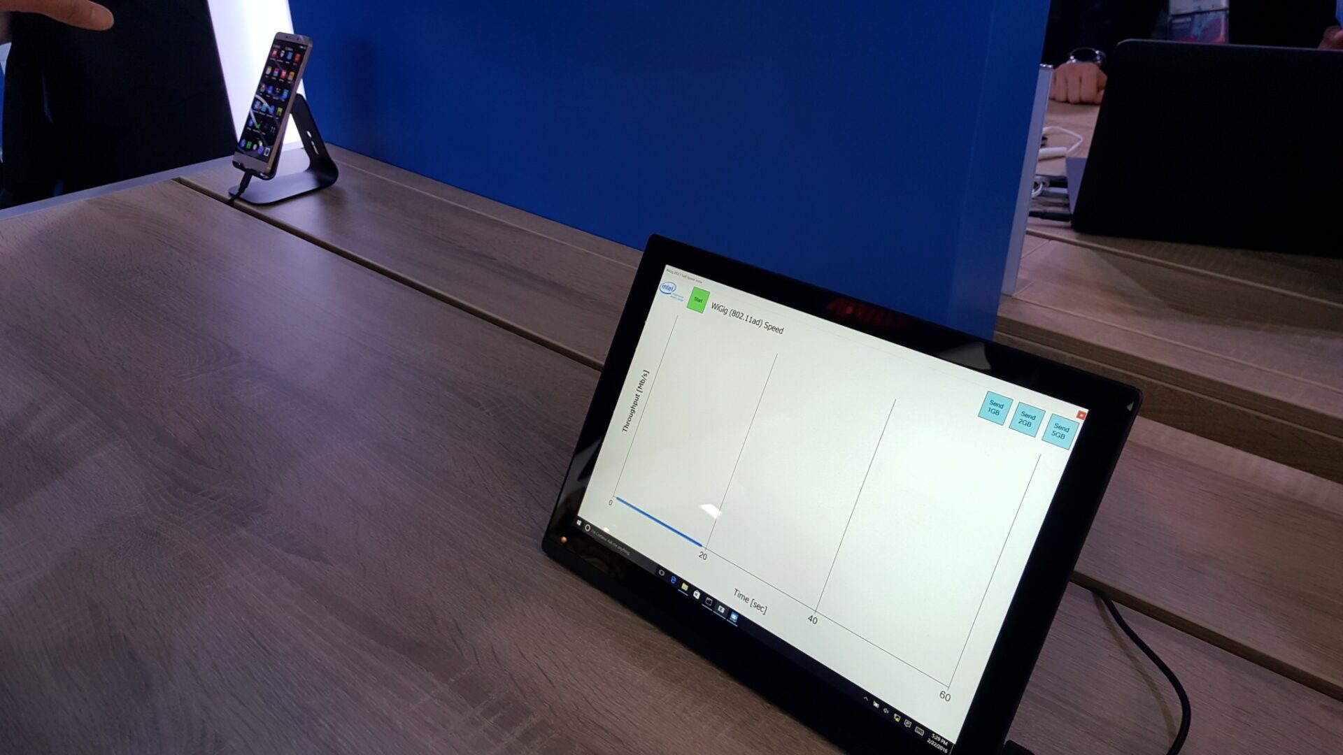 Et on commence par l’installation la plus basique qui se trouve sur le stand d’Intel. Celui-ci exploite une tablette Lenovo ThinkPad X1 (la gamme pro du constructeur) et un smartphone en marque blanche intégrant un processeur Qualcomm Snapdragon 820.