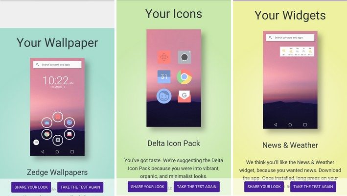 Le quiz est amusant et les résultats assez pertinents. Une fois le questionnaire rempli, Google vous propose un fond d’écran, un launcher, des icônes et des widgets correspondant à vos goûts.