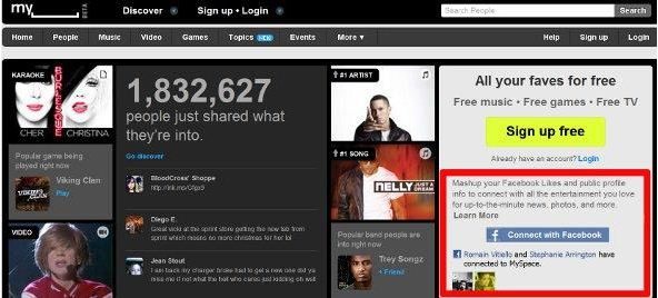Concrètement, un champ « se connecter avec Facebook » a fait son apparition sur la page d’accueil de la version américaine du site. Cette nouvelle fonction permet d’importer tous les centres d’intérêt et tous les « j’aime » déclarés sur le réseau social aux 500 millions de membres. Selon les goûts indiqués par l’internaute sur Facebook, MySpace lui propose une playlist d’artistes censés lui correspondre. Mashup with Facebook devrait peu à peu être décliné sur les versions locales du site qui poursuit son virage vers l’entertainment. Mais aucune date n’est pour l’heure communiquée concernant la France.