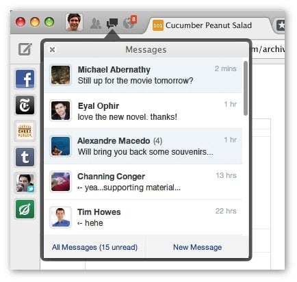 Les amateurs de RockMelt et de Facebook peuvent désormais gérer directement dans le navigateur (1) les requêtes de leurs amis, envoyer des messages, y répondre et consulter toutes leurs notifications.