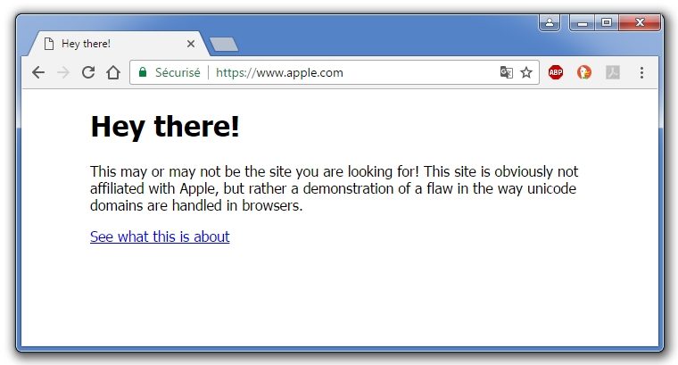 En réalité, cette tactique n’est pas nouvelle. Baptisée « attaque homographique », elle s’appuie sur les noms de domaine internationalisés que l’ICANN a introduit en 2003 et qui permettent de créer des URLs avec des caractères autres que latins. Dans le cas présent, le chercheur a utilisé des caractères cyrilliques qui, étant donné la police de caractères utilisée dans la barre d’adresse, ressemble à s’y méprendre à « www.apple.com ».