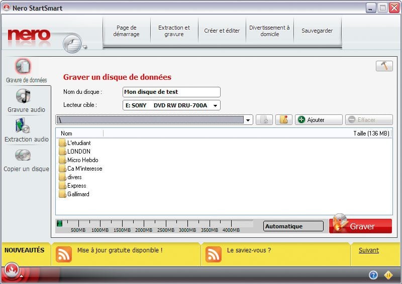 apparition.Sur notre CD de test très rayé, le logiciel a montré ses limites… Le moteur de gravure prend maintenant en charge les formats HD DVD et Blu-ray, si vous êtes l’heureux possesseur d’un graveur compatible. Mais il faudra