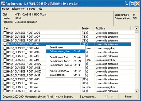 disponible, mais on le trouve toujours en téléchargement. RegCleaner est désormais commercialisé en shareware par Macecraft dans une version francisée et très améliorée dénommée RegSupreme. KSL aussi propose