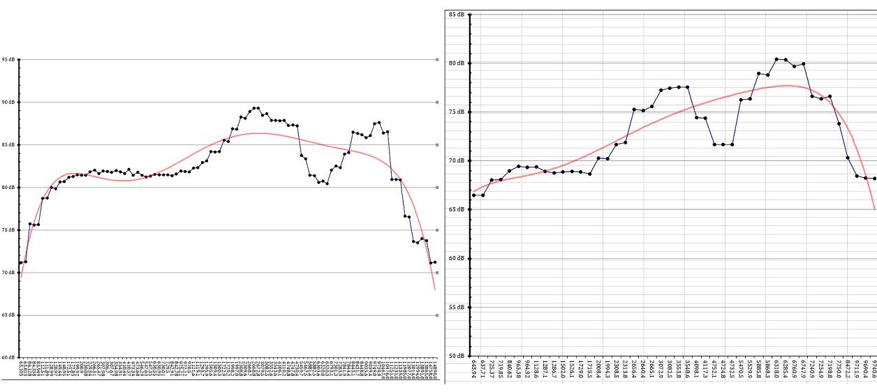 A gauche les résultats de test de bande passante du labo de 01net.com des AirPods, à droite ceux des Antipods.