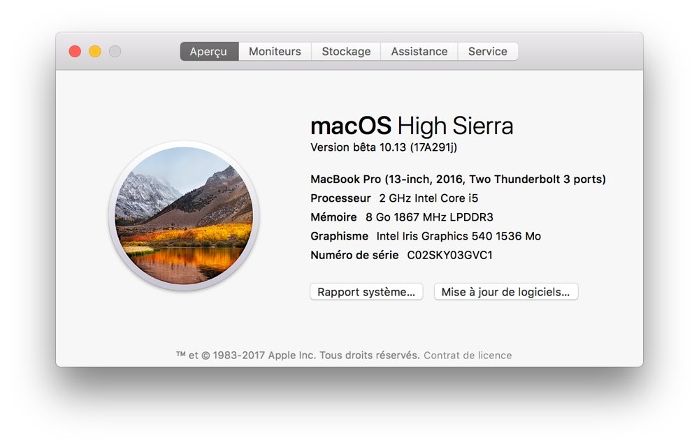 Pour l’heure, macOS High Sierra en est à sa deuxième bêta grand public. Comme souvent, l’expérience est émaillée de petits bugs d’affichage mais l’OS demeure très stable et plutôt performant.