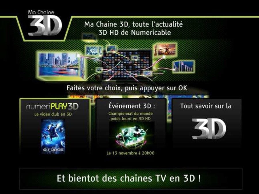La télévision en relief va devenir un des arguments commerciaux des fournisseurs d’accès à Internet. Début septembre, Numericable ouvrait un canal pilote consacré aux contenus 3D. Le FAI annonce aujourd’hui, 8 novembre, le lancement d’une véritable chaîne, Ma Chaîne 3D, disponible à compter de demain mardi.