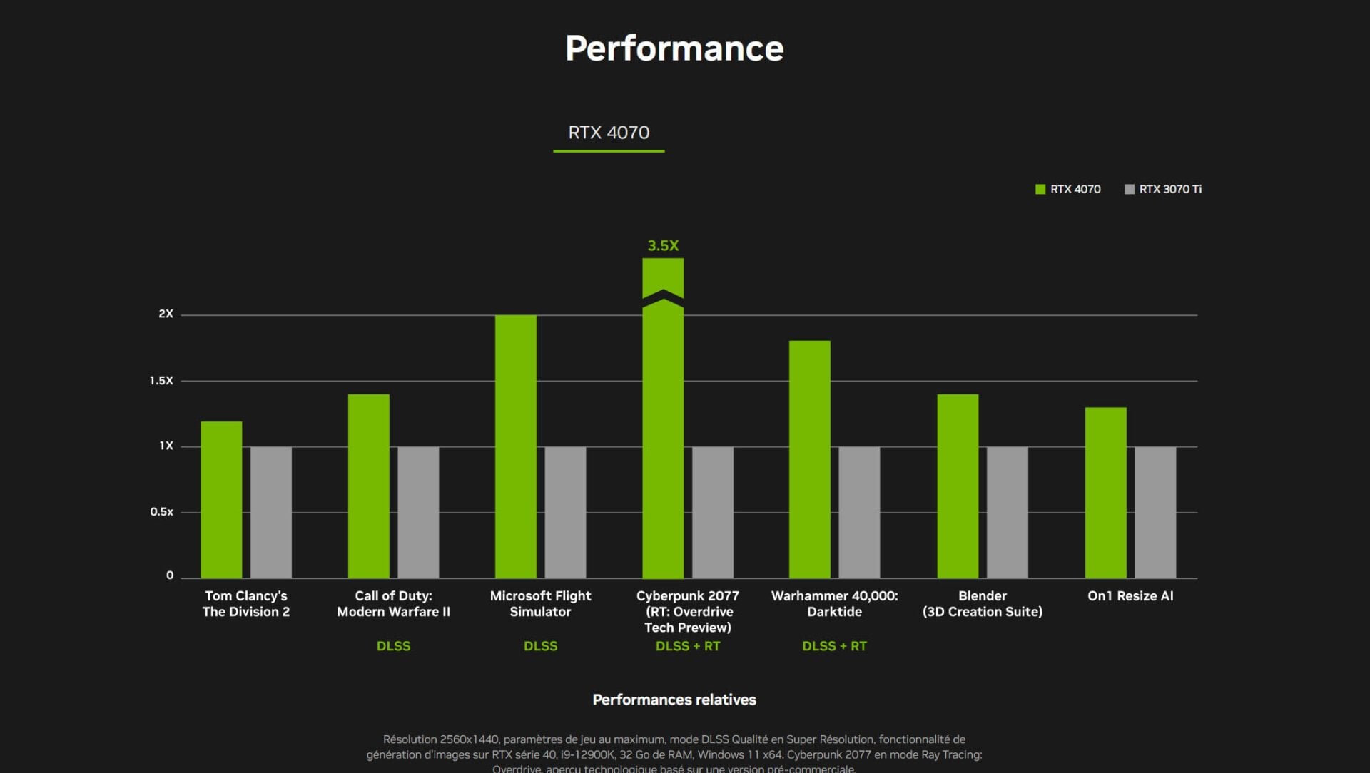 Moins gourmande en ressources (et donc en argent !) que la 4K tout en offrant bien plus de détails que le traditionnel 1080p, le 1440p est la définition phare actuelle pour les joueurs. Des joueurs, dont certains profils « compétition », ne veulent plus se contenter de 60 images par seconde dans leurs titres phares. La RTX 4070 – et a fortiori ses déclinaisons « Ti » ciblent des fréquences de rafraîchissement d’au moins 80-90 fps dans la plupart des jeux actuels. Ce que les premiers tests indépendants commencent à démontrer.