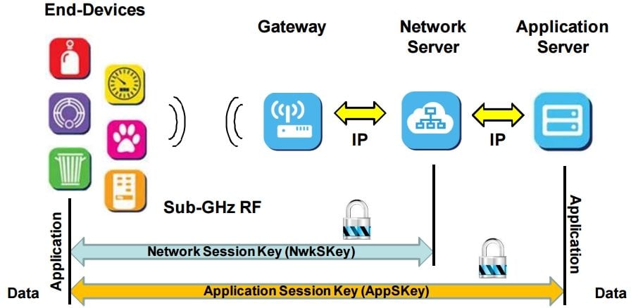 Sur le papier, pourtant, l’histoire commençait bien. La technologie LoRaWAN, en effet, prend soin de chiffrer par défaut tous les messages de bout en bout, depuis l’objet connecté au serveur applicatif. Tous les messages sont par ailleurs signés entre l’objet connecté et les serveurs du réseau LoRaWAN. Ces opérations s’appuient sur deux clés différentes : AppSKey pour le chiffrement, et NwkSKey pour la signature.