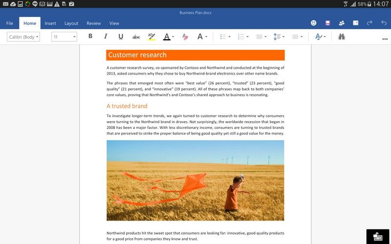 Pour commencer, Microsoft indique qu’une version Preview de sa suite bureautique sera disponible début 2015 pour les tablettes sous Android. Les personnes intéressées peuvent s’inscrire dès aujourd’hui sur une page dédiée sur le site de l’éditeur.