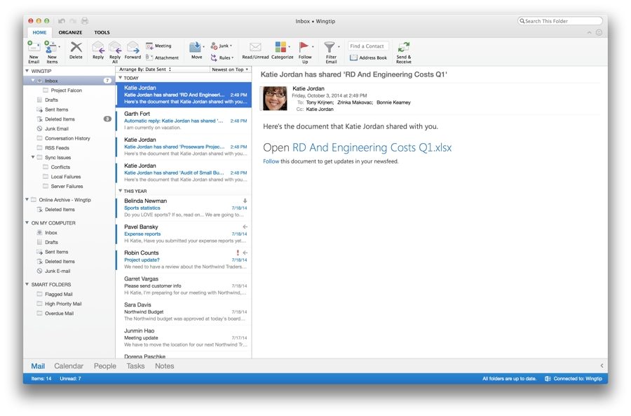 La rumeur parlait également d’une sorte de bêta publique disponible dès la fin de l’année 2014. Elle était partiellement fondée. Microsoft a en effet annoncé la disponibilité immédiate d’une nouvelle version d’Outlook pour Mac pour les clients Office 365.