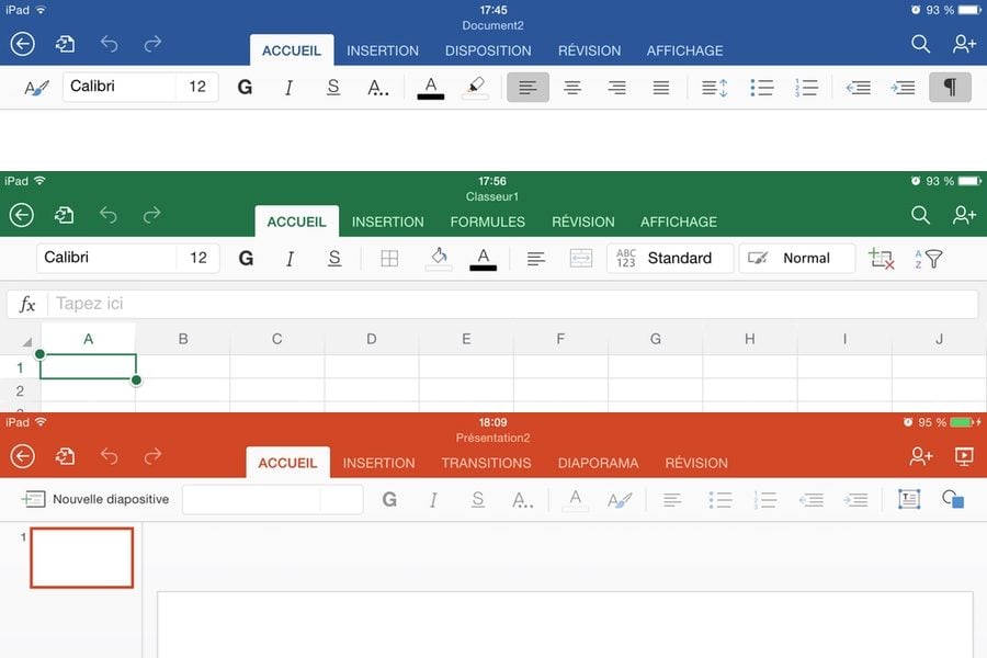 Il est vrai que l’arrivée d’Office sur les tablettes d’Apple est une première à plus d’un titre. Si la suite bureautique de Microsoft était bel et bien présente sur tablette Surface, c’est la première fois que le géant de Redmond adapte ses outils Office à une interface tactile.