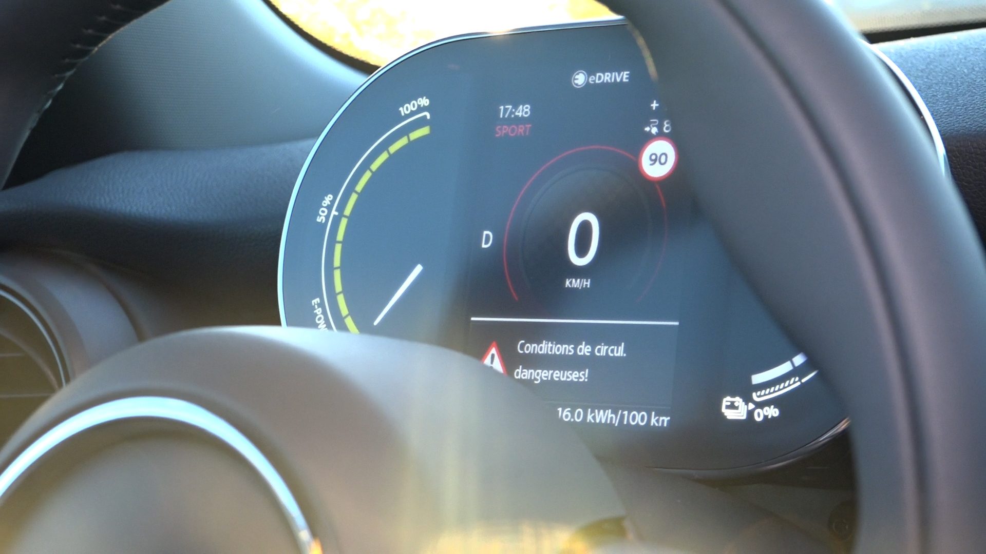 Enfin, la version 100% électrique dispose de quatre modes de conduite qui changent autant les sensations que les performances. Le mode « Sport » est à notre sens le plus adapté aux qualités de cette Mini et offre bien plus de plaisir qu’un mode « Mid » bien tendre. Bien évidemment, il est aussi plus gourmand en batterie. Quant aux modes « Green » et « Green+ », ils privilégient l’autonomie au détriment des performances, voire du confort dans le cas du second. En effet, celui-ci coupe toutes les fonctions de chauffage et réduit la puissance moteur. Il doit surtout être considéré comme un mode de survie lorsque la panne de batterie guette.