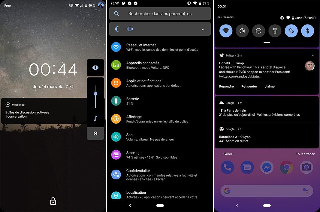 À l’heure actuelle, il est impossible d’activer ou de désactiver le thème sombre depuis les réglages. Le mode Économie d’énergie offre un aperçu du nouveau design, mais limite au passage les fonctions. Petite astuce cependant, si vous aviez activé le thème foncé du Pixel Launcher sous Pie, le mode sombre sera actif au premier démarrage de votre Pixel sous Q. Impossible cependant de le désactiver.