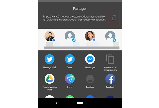 Nouveauté sous Q, on trouve tout en haut de ce volet un raccourci vers le copier-coller, histoire de gagner du temps. Il est aussi affiché un aperçu précis de ce que vous vous apprêtez à partager.