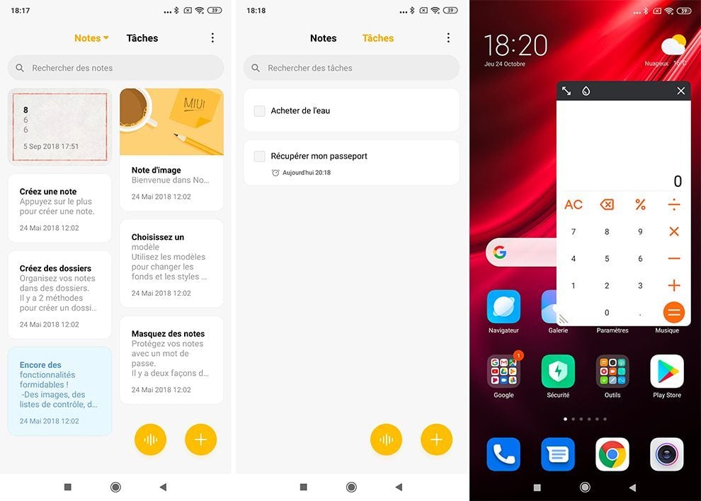 La nouvelle application Calculatrice est également une excellente surprise. Sa spécificité est de pouvoir être rangée dans un coin de l’écran afin de rester toujours accessible. Lorsque vous devez calculer différentes choses tout en prenant des notes, cette possibilité s’avère vraiment très pratique.