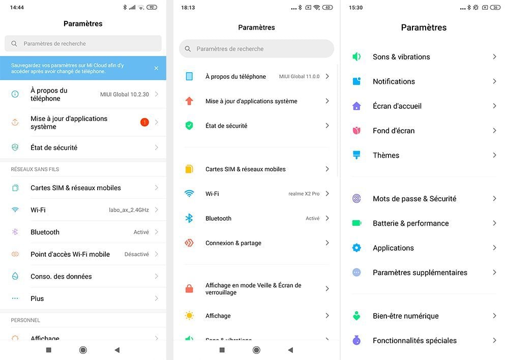 On remarque d’ailleurs que le nombre de réglages affichés sur la première page est inférieur sur MIUI 11 par rapport à MIUI 10 (26 contre 30). Tout ceci est d’autant plus intéressant qu’une dizaine d’entre eux, les plus inutiles, ont disparu. Ce sont les plus importants comme ceux sur la confidentialité ou le bien être numérique qui sont mis en avant dans cette nouvelle version.