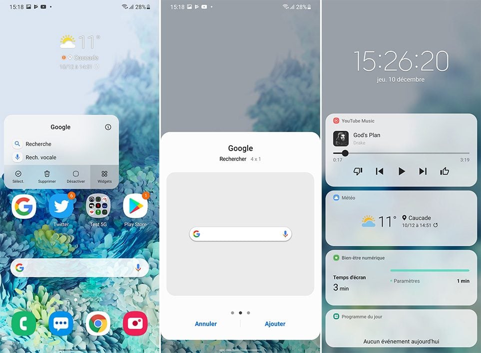 Là-aussi, difficile de ne pas voir un lien avec Apple. Au moment même où iOS 14 a popularisé comme jamais les widgets pour smartphone, Samsung leur donne un second souffle avec One UI 3.0. Premier changement, en maintenant appuyé son doigt sur l’icône d’une application, on peut accéder aux widgets proposés par son développeur. Avant, il fallait passer par le centre widgets d’Android que beaucoup d’utilisateurs ne connaissent pas.