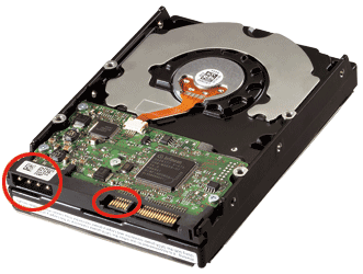 Ceux qui ont encore une alimentation sans câble d’alimentation S-ATA pourront toujours utiliser le connecteur Molex de ce disque de Hitachi. Il est en effet équipé du bon vieux connecteur qui équipait tous les disques depuis plus