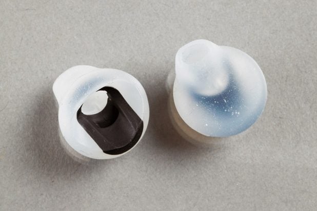 Les oreillettes en forme de poire ont un avantage : leur extrémité pénètre plus profondément dans le conduit auditif, d’où une meilleure transmission des basses. Mais certaines personnes ne supportent pas cette intrusion ; ce fut notamment le cas d’un des membres de notre jury.