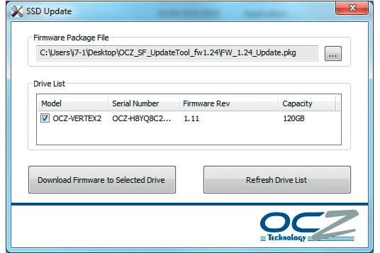 Les disques SSD possèdent tous un logiciel interne (firmware) qu’il faut parfois mettre à jour pour améliorer la rapidité, corriger un problème de fonctionnement ou offrir une meilleure compatibilité. La mise à jour du firmware du Vertex 2 s’effectue directement avec Windows. Il suffit de télécharger le programme adéquat sur le site du fabricant.