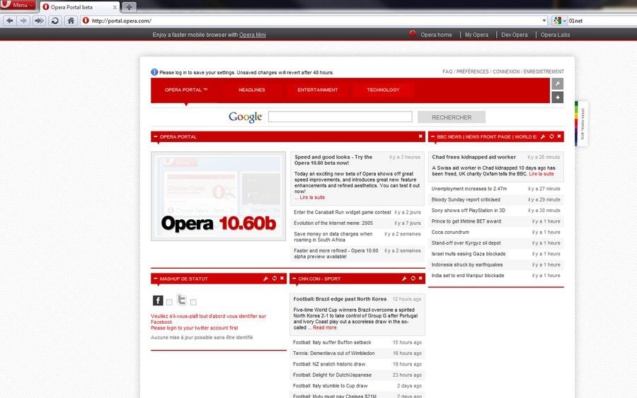 Nous rappelons que cette bêta d’Opera 10.60 est une version de test et qu’elle peut donc se montrer instable.
