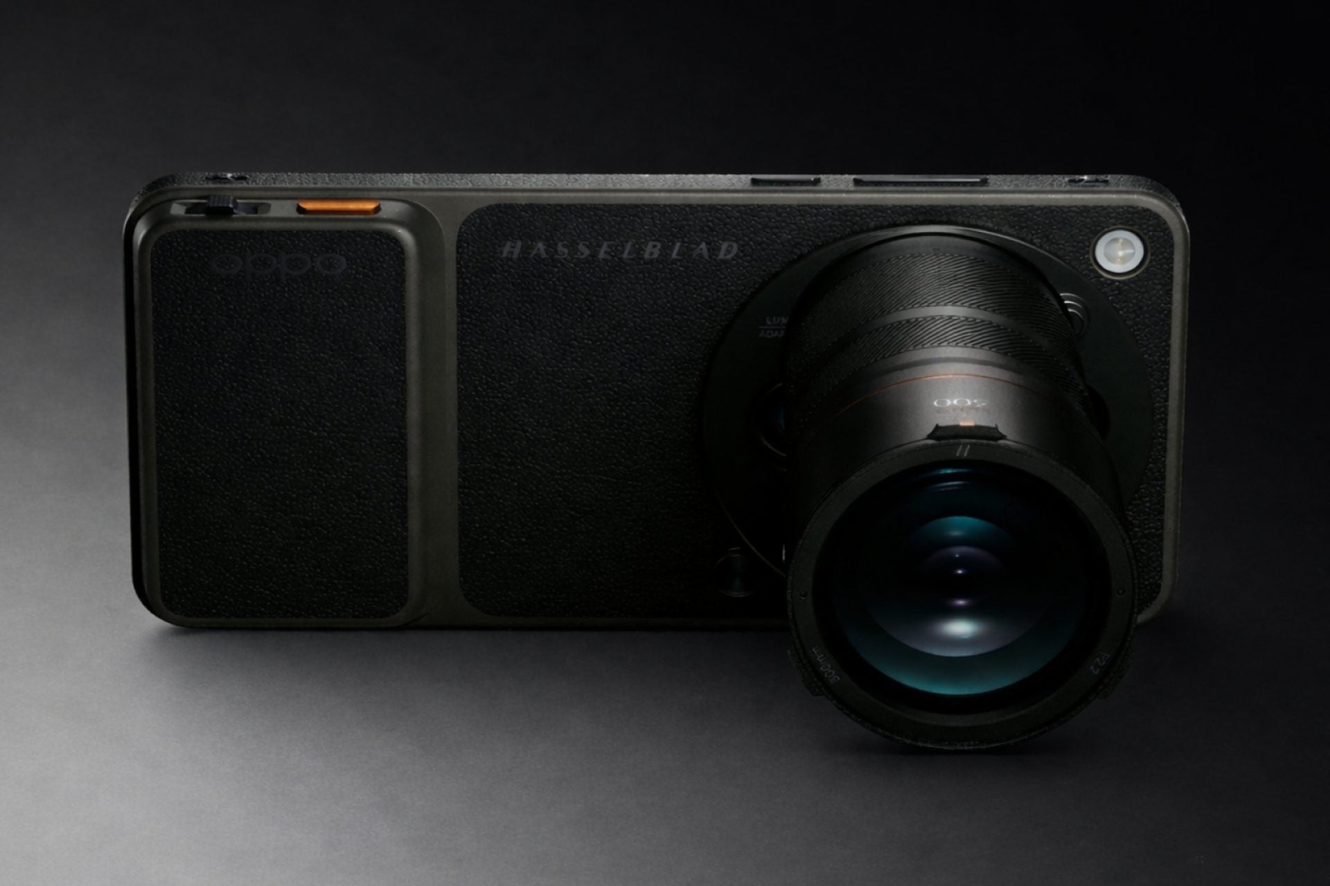Commençons par cet aspect. Nous découvrons donc les trois coloris de l’appareil : noir, blanc et orange. Le noir adopte un simili cuir et une séparation en deux parties qui vient imiter un peu ce que ferait un grip d’appareil photo. C’est d’ailleurs le seul à afficher le partenariat avec Hasselblad en affichant le logo du spécialiste de l’optique en toutes lettres. Les blancs et orange semblent eux faits d’une matière plus lisse. Le modèle orange rappelle immanquablement l’iPhone 17 Pro.