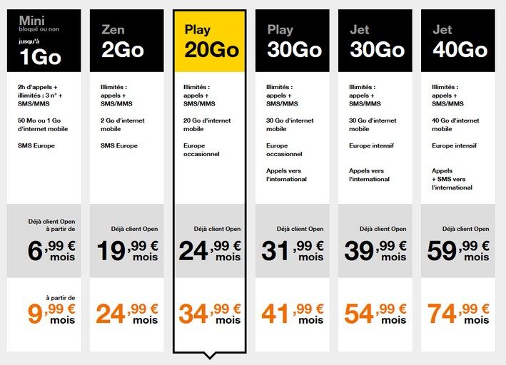 Rappelons que ces forfaits s’adressent aux nouveaux clients Orange et que ceux ayant souscrit les dernières offres Open Play ou Jet (depuis le 16 mai 2016) bénéficient automatiquement de cette hausse de leur enveloppe data, sans changement de prix.