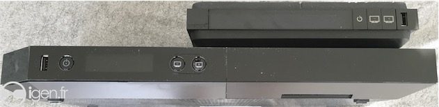 On y voit un décodeur (photo ci-dessus), toujours noir, mais moins large qu’actuellement et avec un afficheur plus grand en façade. Niveau connectique, on distingue sur d’autres clichés une prise HDMI, une prise Ethernet, un port USB, une sortie S/PDIF, une prise au format mini-Jack et une prise TNT. Pas de possibilité, à priori, de pouvoir stocker des films en-dehors des programmes TV comme sur la Freebox. Mais il devrait être envisageable d’y raccorder un disque dur externe, y compris en Wi-Fi.