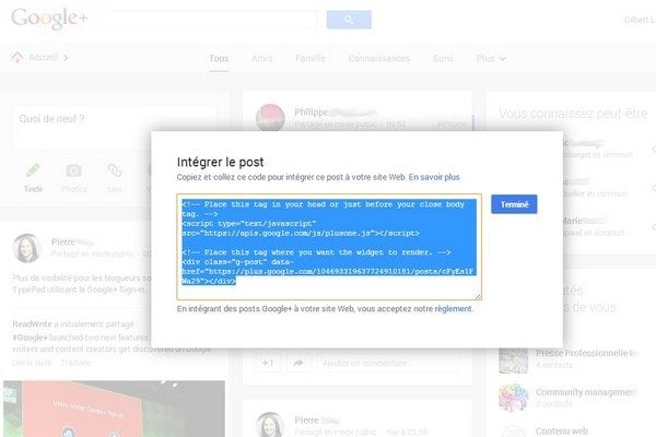 Google+ propose deux nouvelles fonctions pour accroître son audience Désormais, le réseau social permet aux sites d'intégrer des messages publics dans leurs pages. Il donne aussi la possibilité aux auteurs de contenu d'être identifiés par leur profil Google+. 10/09 - 12h07