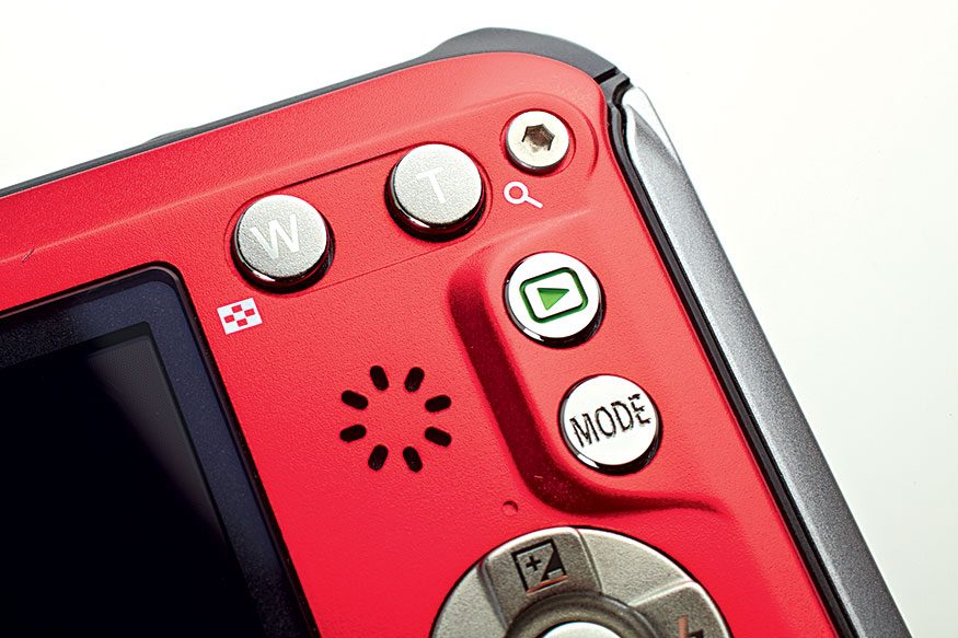 Après avoir essayé un bouton unique au-dessus de l’appareil sur ses modèles précédents, Panasonic a compris que, lorsqu’on a enfilé des gants de plongée ou de ski, deux boutons pour zoomer/dézoomer étaient bien plus pratiques. Bien vu !