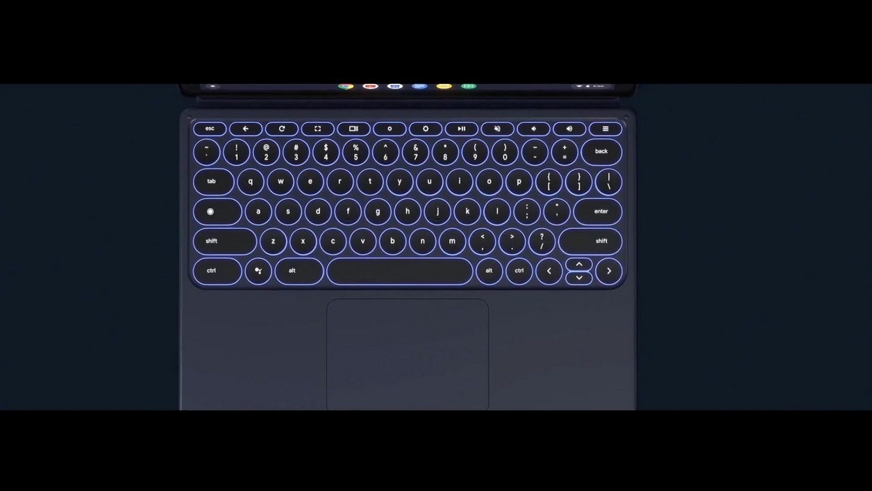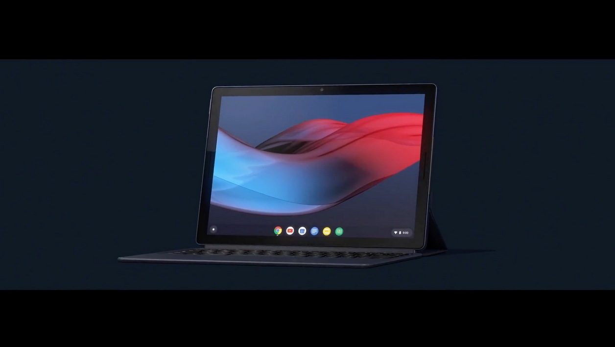 Comme avec ses concurrentes, un clavier détachable sera disponible. Confirmant ce qu’on avait aperçu sur les visuels qui avaient fuité il y a quelques jours, il arbore des touches rondes, dont une dédiée au lancement de l’Assistant Google. Dans l’obscurité, il peut également se rétroéclairer et Google promet que sa frappe est très silencieuse. A l’arrière, un système de protection permet aussi de régler l’angle d’inclinaison de l’écran.