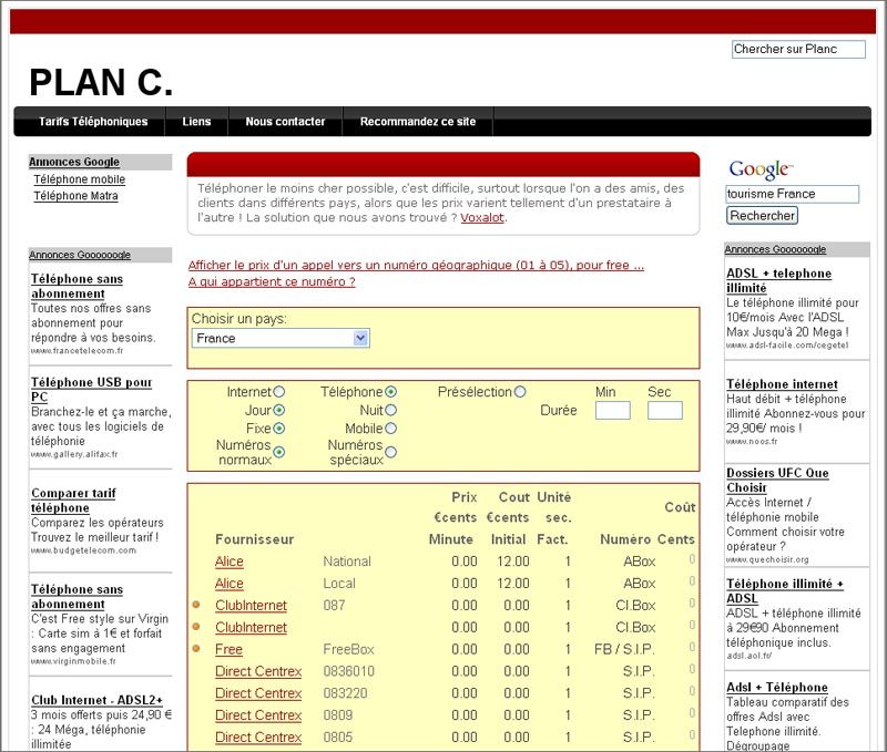 Plan C vous délivre alors une liste des fournisseurs, avec le prix à la minute et le coût initial éventuel, ainsi qu’un lien direct vers ceux-ci