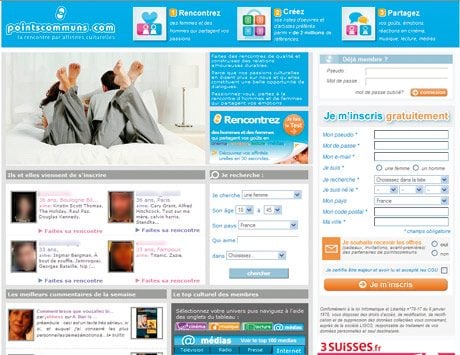 Points communs mise sur les affinités culturelles pour créer des couples. Plutôt que d’indiquer vos caractéristiques physiques, ce sont vos goûts en matière de cinéma, musique, littérature, qu’il faut indiquer. Attention, ce site
