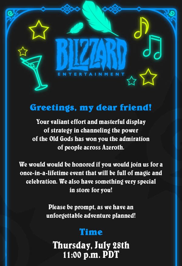 Envoyée à certains médias américains (dont Polygon), l’invitation à se connecter à la chaîne officielle Twitch de HearthStone, le 28 juillet prochain, sous-entend qu’il y sera question “d’une inoubliable aventure”, de quoi nous mettre l’eau à la bouche.