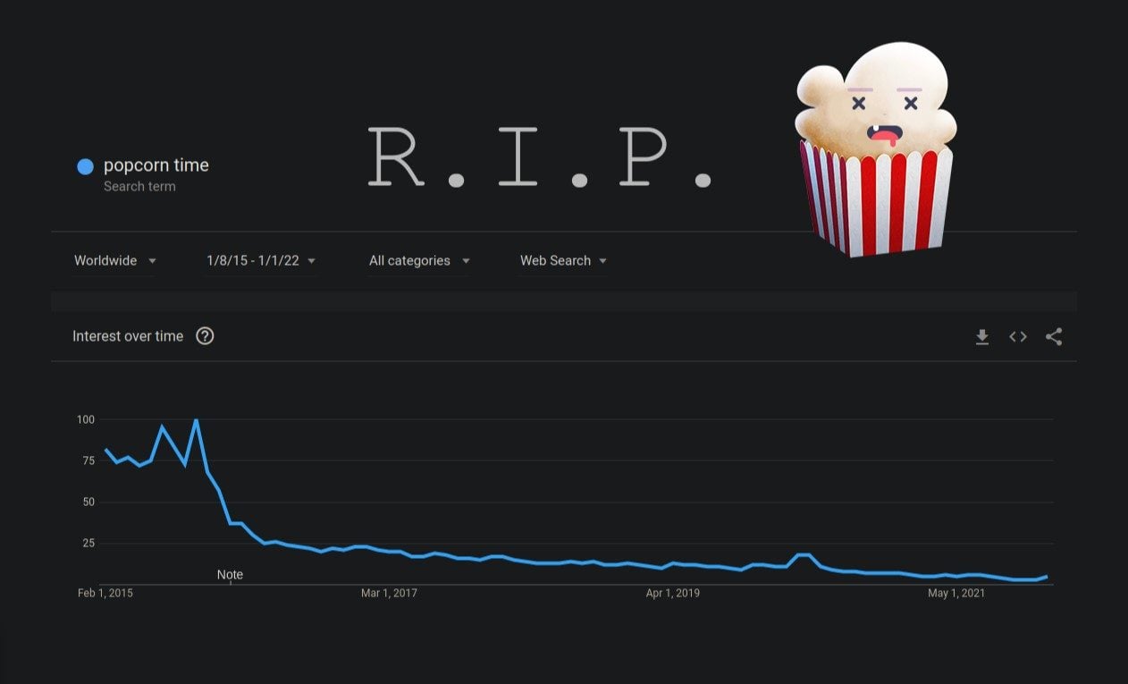Les temps changent, et avec eux les habitudes de piratage. Le site popcorn-time.tw vient de baisser définitivement le rideau. Un énorme « R.I.P. » (repose en paix) orne désormais la page d’accueil.